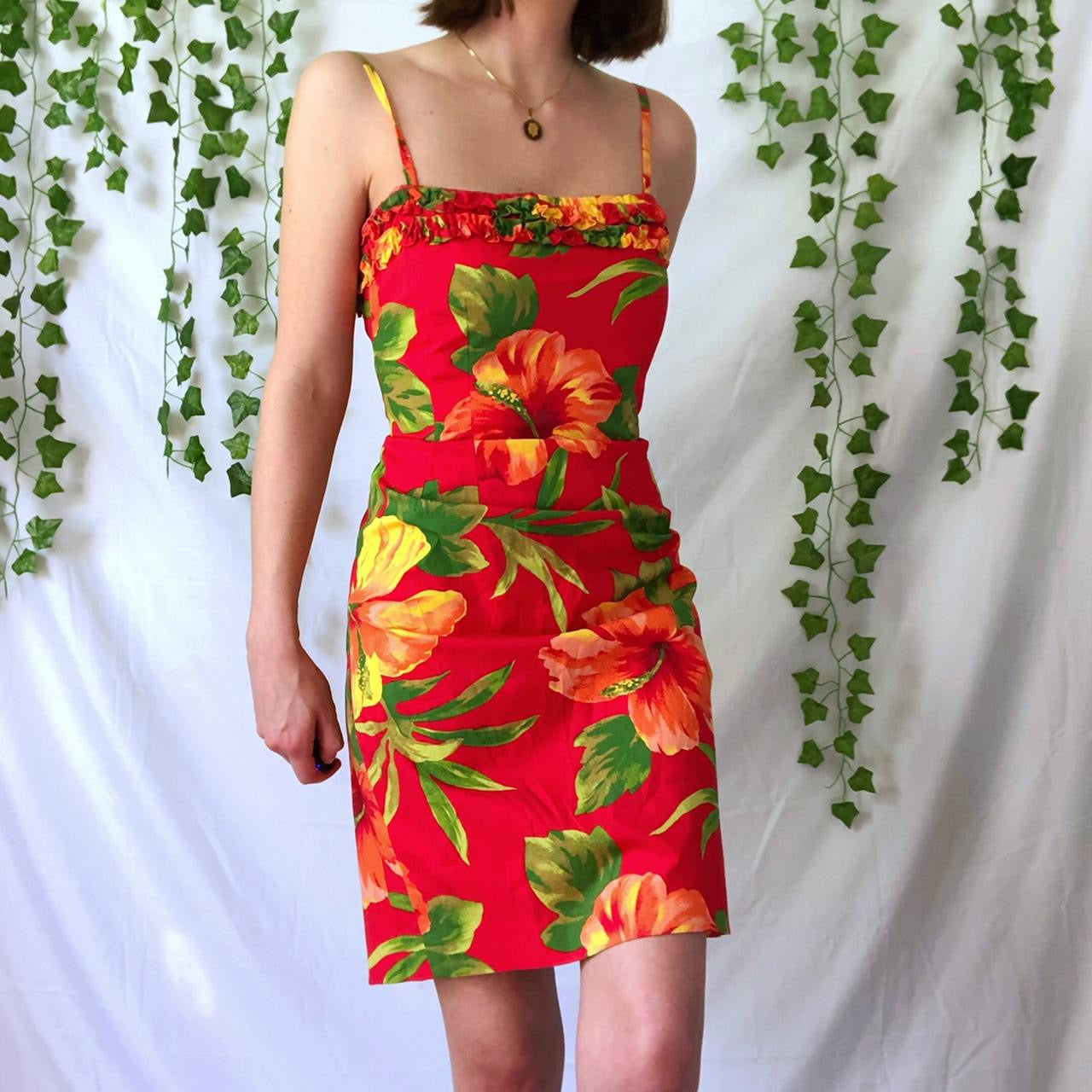 Vintage 90s red Hawaiian floral print cami dress 🌺❤️ From Ralph Ralph Lauren. Marked a size 6. Super nice quality; has boning and adjustable straps that can also convert to a cross-back style.
