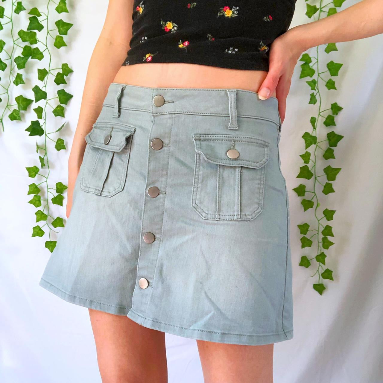 Y2K light blue gray button front cargo skirt. From altar’d state. Size medium. Has stretch.