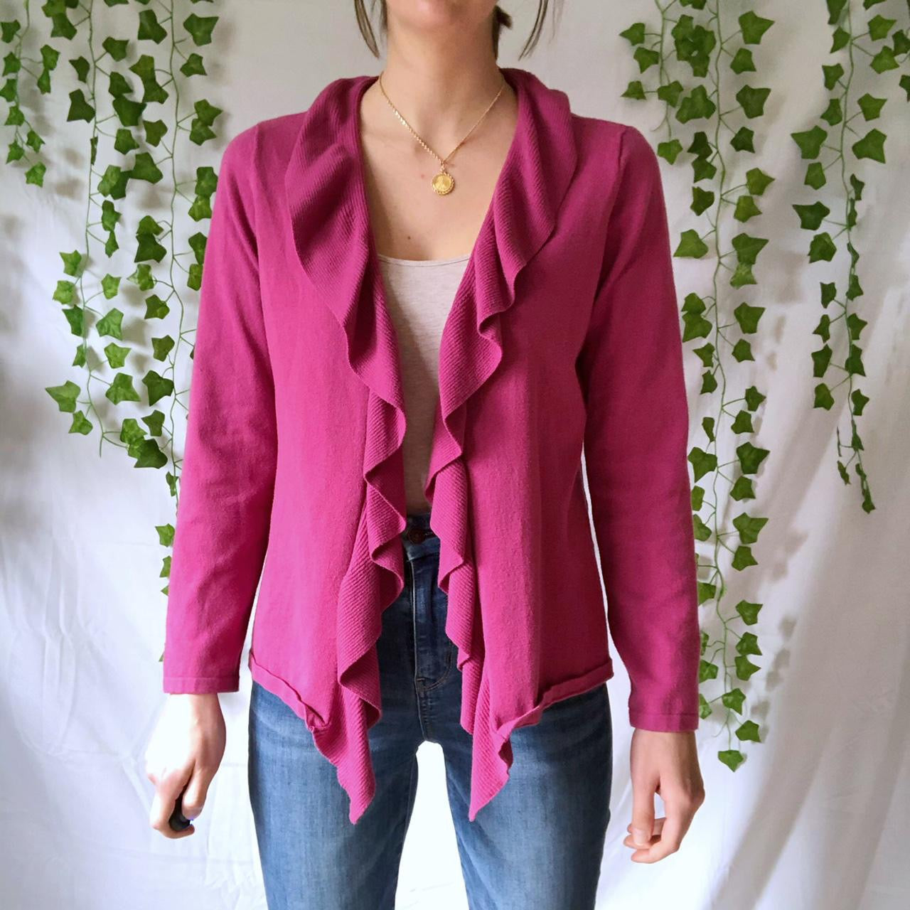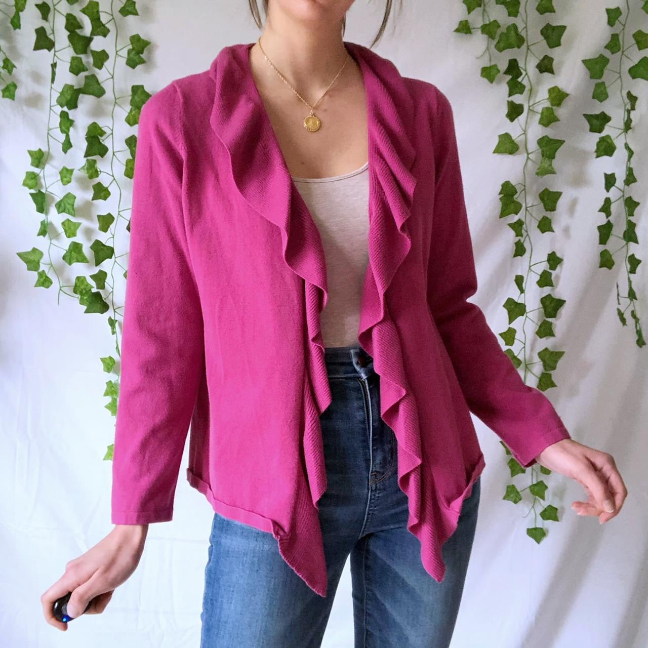 Y2K ruffled pink cardigan. From Charter Club. Size petite medium. Super cute piece to dress up or down! This is such an adorable, unique item. No buttons/closure. 70% cotton, 30% nylon.